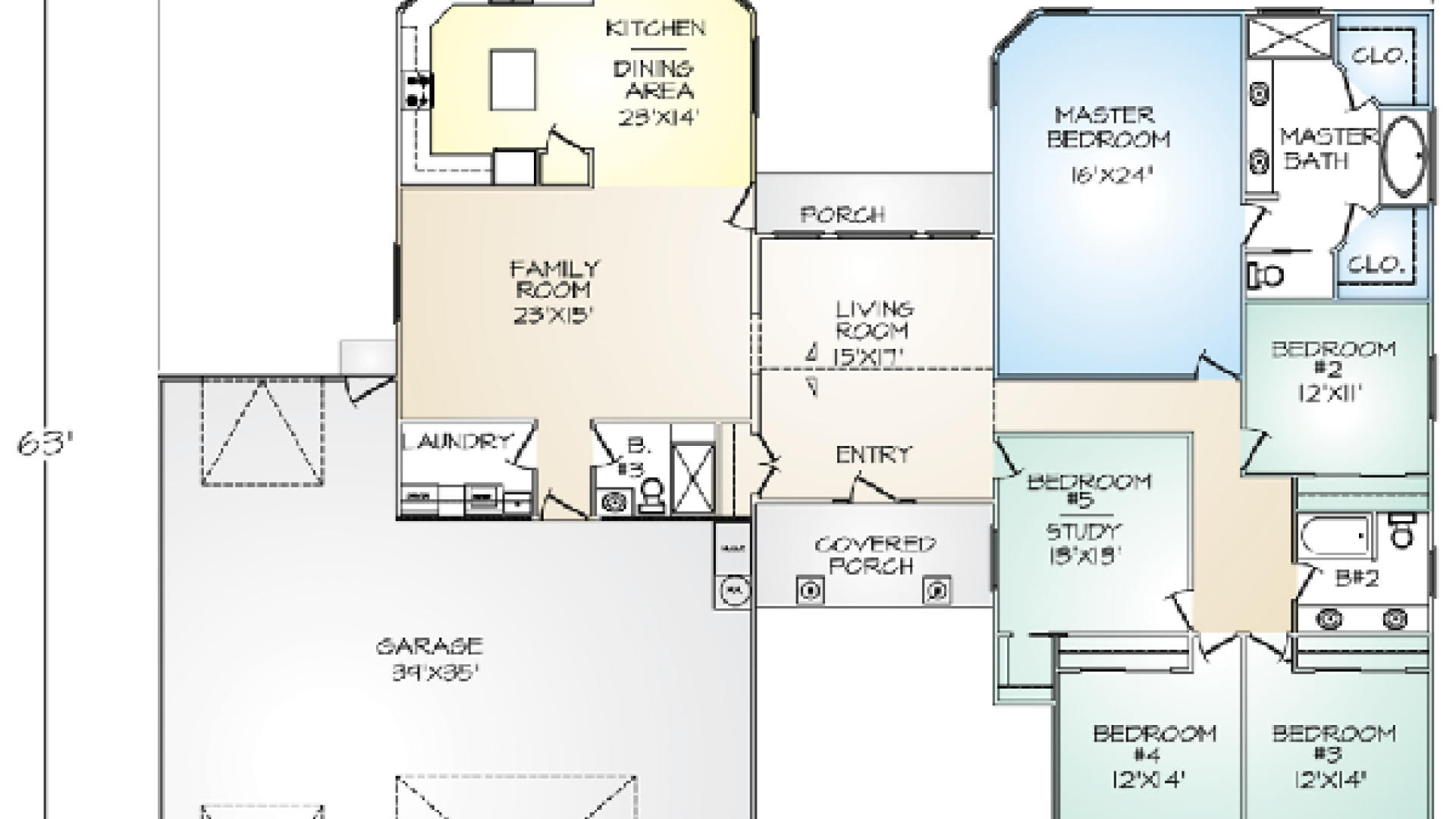 The Avalon panelized kit home boasts an abundance of space. The front entry opens directly into a substantial living room featuring a vaulted ceiling and a respectable view of the back porch and yard through three large windows. Adjoining the living room, the spacious family room offers access to the kitchen and dining room, oversized laundry room, full bath, and garage. A central island and plenty of counter space accentuate the sheer size of the Avalon’s kitchen. The master suite offers a private bath and two separate walk-in closets, while any of the other four bedrooms can easily be modified as a den, home office, or music room. Nine-foot ceilings provide volume to the Avalon. The large three-car garage has ample room for a hobby area or extra storage, and features the ability to drive through to the backyard.