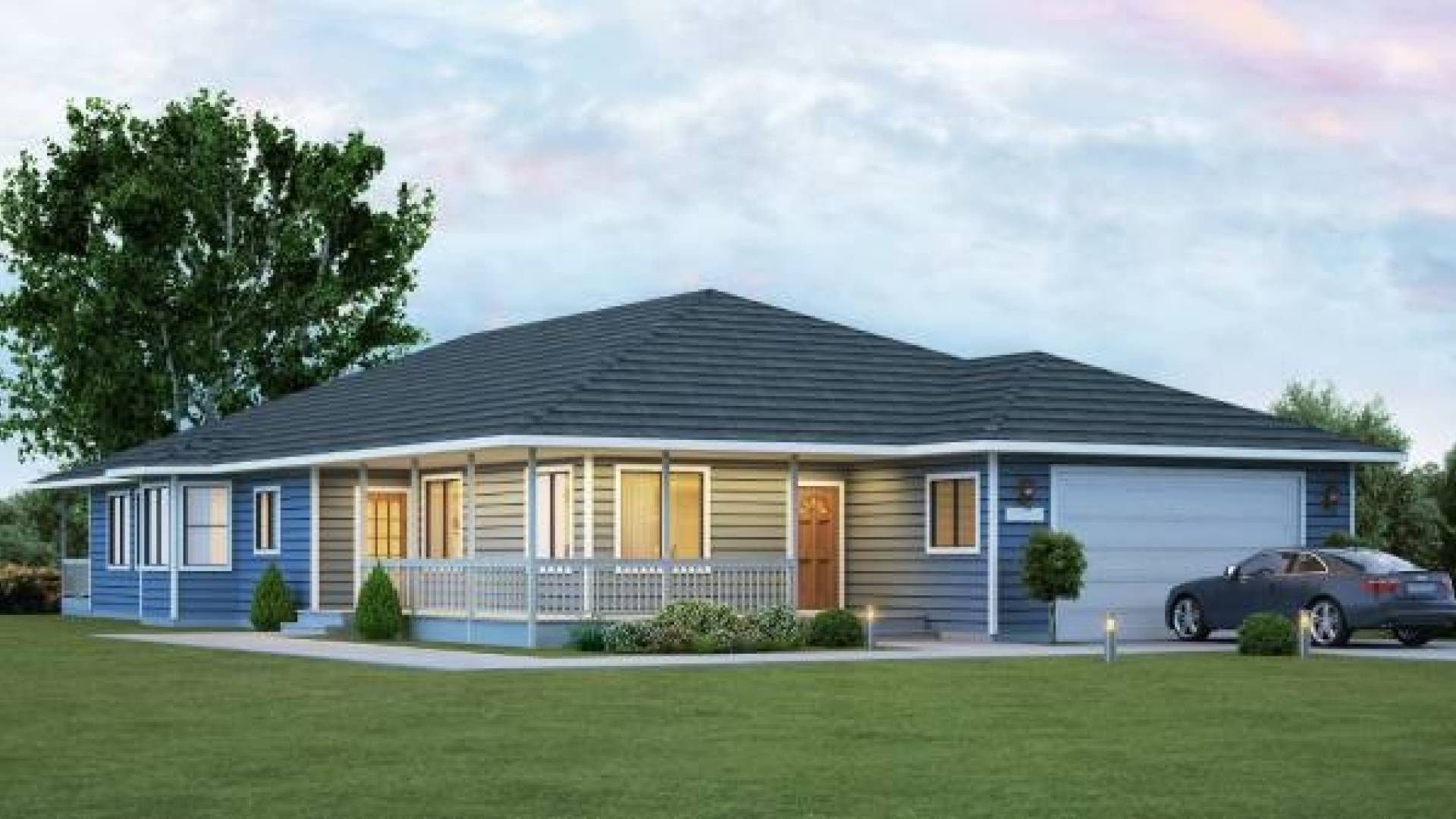 Especially designed for a deep lot, the Mendocino panelized kit home offers an attractive combination of space and convenience. The corner porch is easily accessed from the front and side yards as well as from the front and kitchen doors. Centrally located, the full-sized kitchen and nook feature a large walk-in pantry, breakfast bar, and island. Nine-foot ceilings accentuate the sheer size of the Mendocino. An extra-large laundry room enjoys both interior and exterior doors. The master suite has space for a desk, or media area, in addition to a large walk-in closet. Private access to the covered rear porch and a multi-use master bathroom featuring two separate rooms are additional highlights of this plan. Bedrooms three and four can be altered to serve as a den, master retreat, or joined to create a single, large bedroom. The two-car garage has an extra ten feet of depth that can be used for storage or a work bench, or it can easily be modified for use as a bonus room.