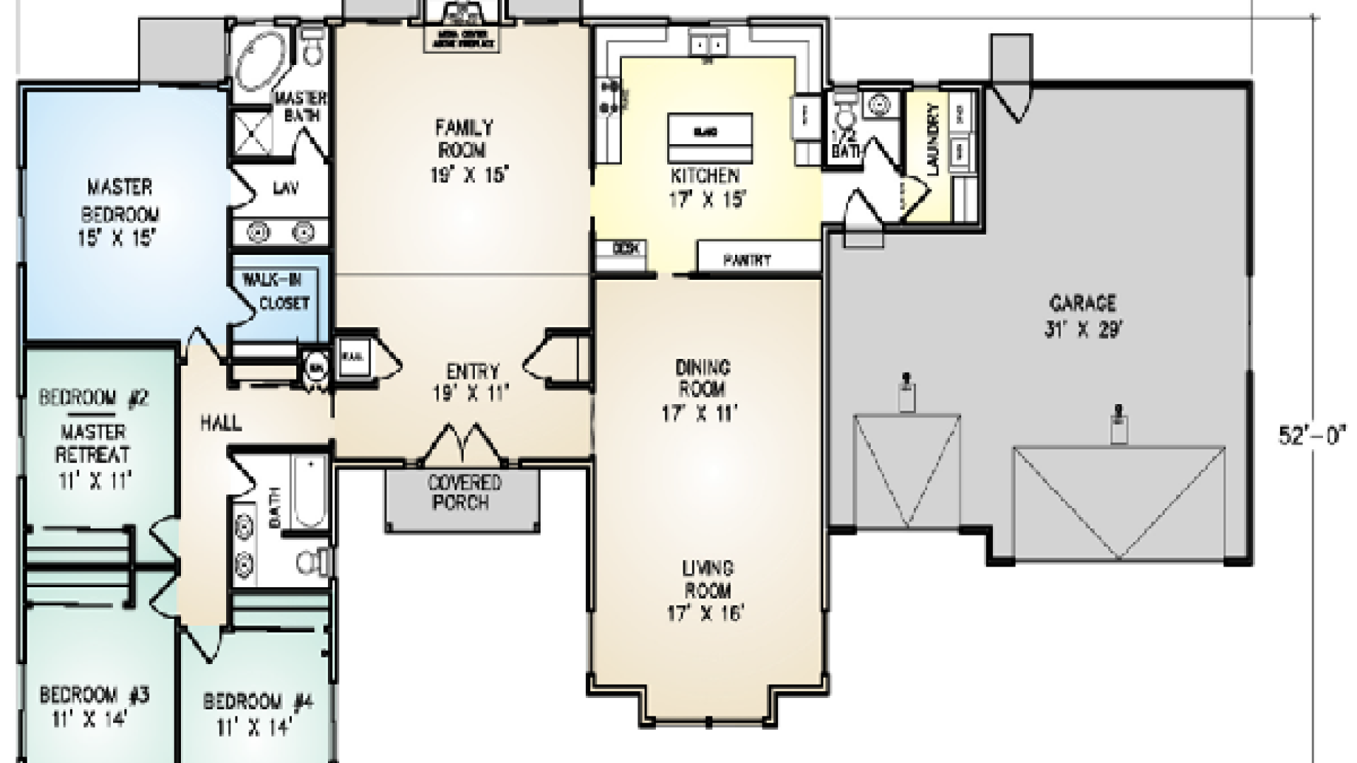 The San Rafael panelized kit home is a spacious plan with vaulted ceilings, bay windows, and a grand entry. The open living and dining areas flow into a separate family room with a picturesque view of the backyard. The kitchen, laundry room, and half bath are conveniently located only steps away from the main living areas. This plan has four bedrooms, one of which can be adapted for use as a master retreat or den. The third-car area of the garage can be easily modified as a fifth bedroom, home office, or shop.