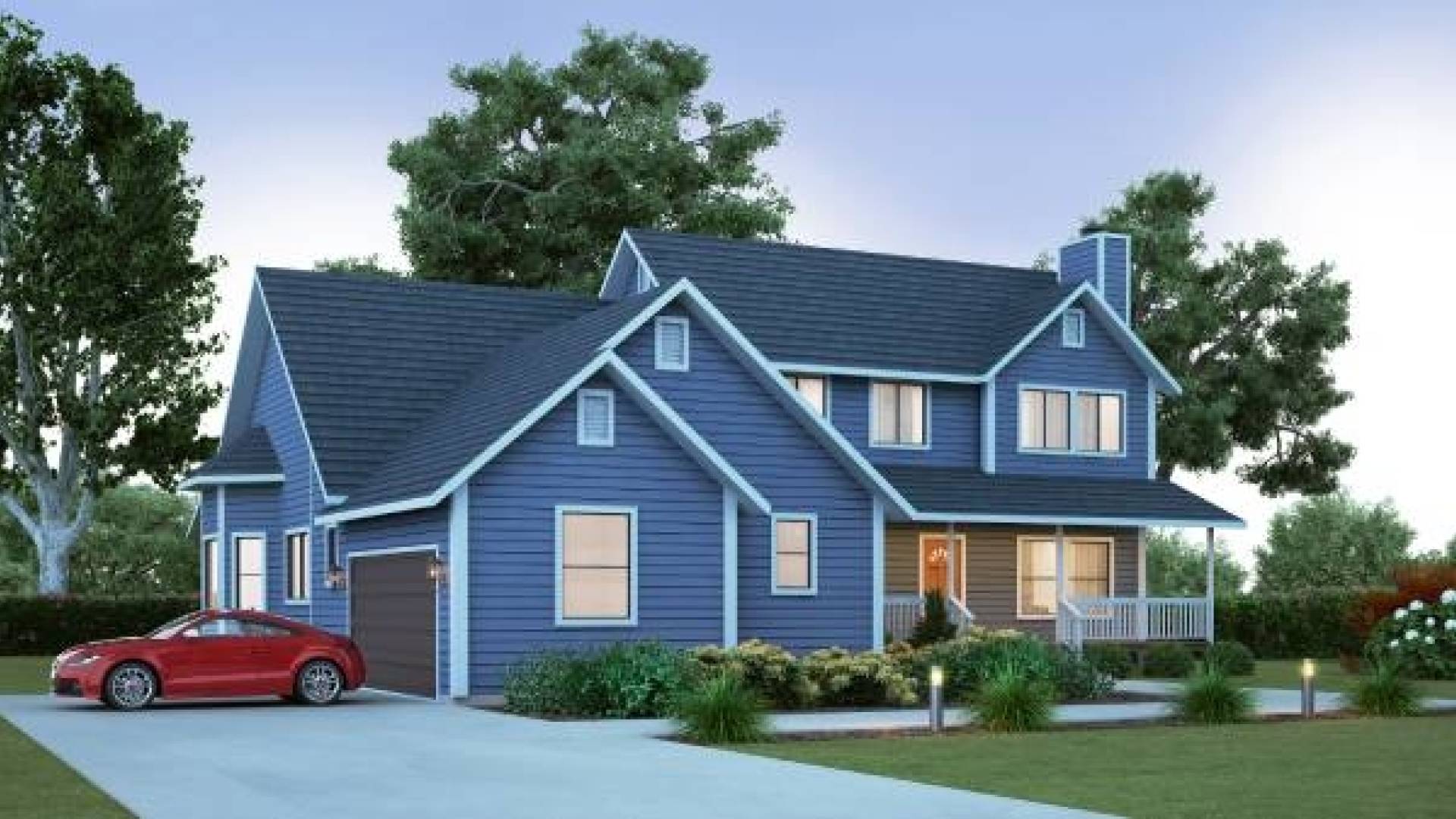Large covered front and rear porches are features of this farmhouse-style kit home. The formal and informal interior living areas feature a entry foyer with columns dividing the formal dining and living rooms. Servicing the spacious family room, the kitchen enjoys an island work counter as well as a snack bar. A laundry room is conveniently located and also serves as a mud-room entry from the garage. The Rockport incorporates a first floor master suite, while the second floor has three more bedrooms and a full bath.