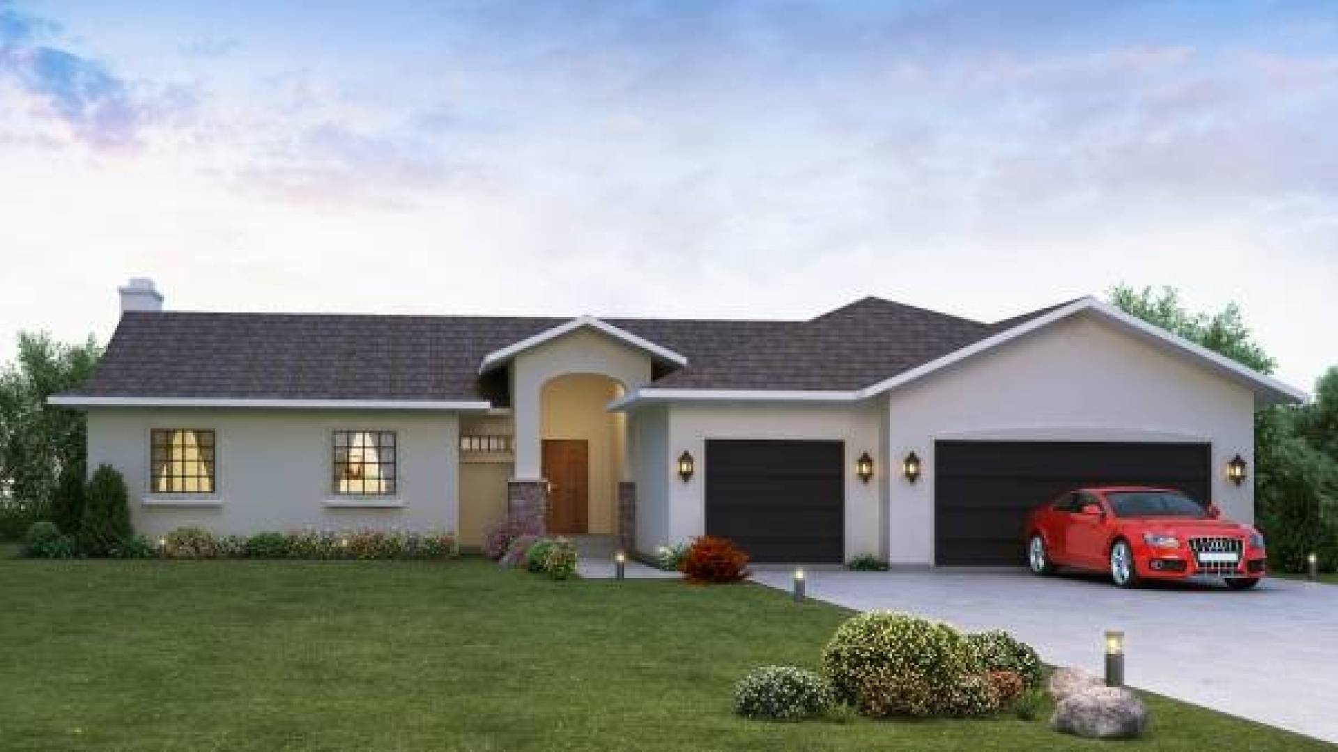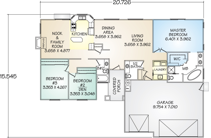The essence of Old World style is captured in this exceptional one-story panelized kit home. The Laguna provides nine-foot ceilings and plenty of room for both formal and informal entertaining. Sleeping areas are split for privacy, with the master suite on one side of the home and secondary bedrooms with a full bath on the other. The spacious master suite features a master bath and a generous walk-in closet.