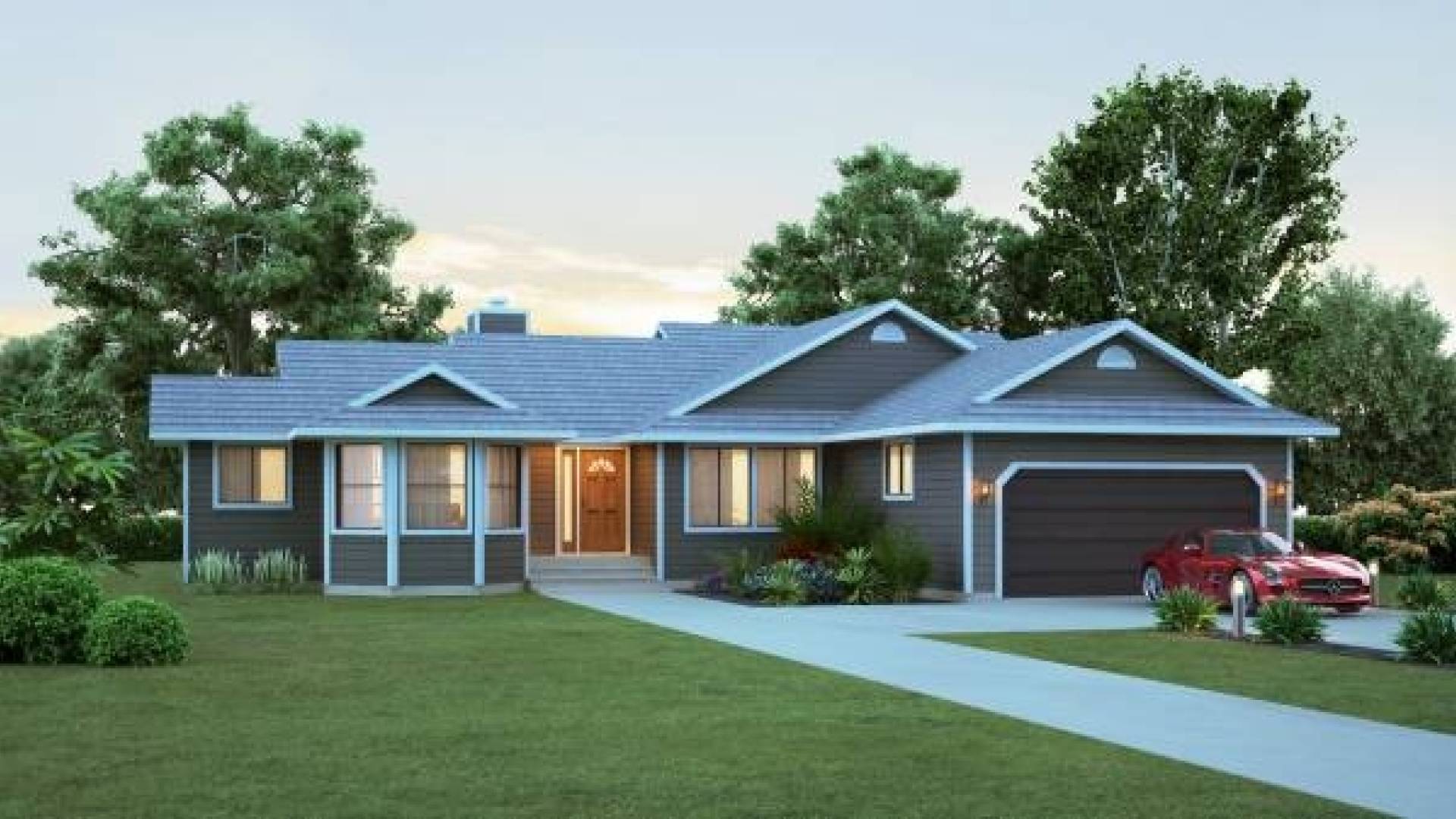 The Olympa panelized kit home is a flexible, open-style design. This plan features an interior laundry room, separate dining and breakfast nook, and a front bedroom that could serve as a den opening off of the entry. There are ample storage areas, especially for linens, and a large master bedroom walk-in closet. The master bathroom has both a large tub and a separate shower.